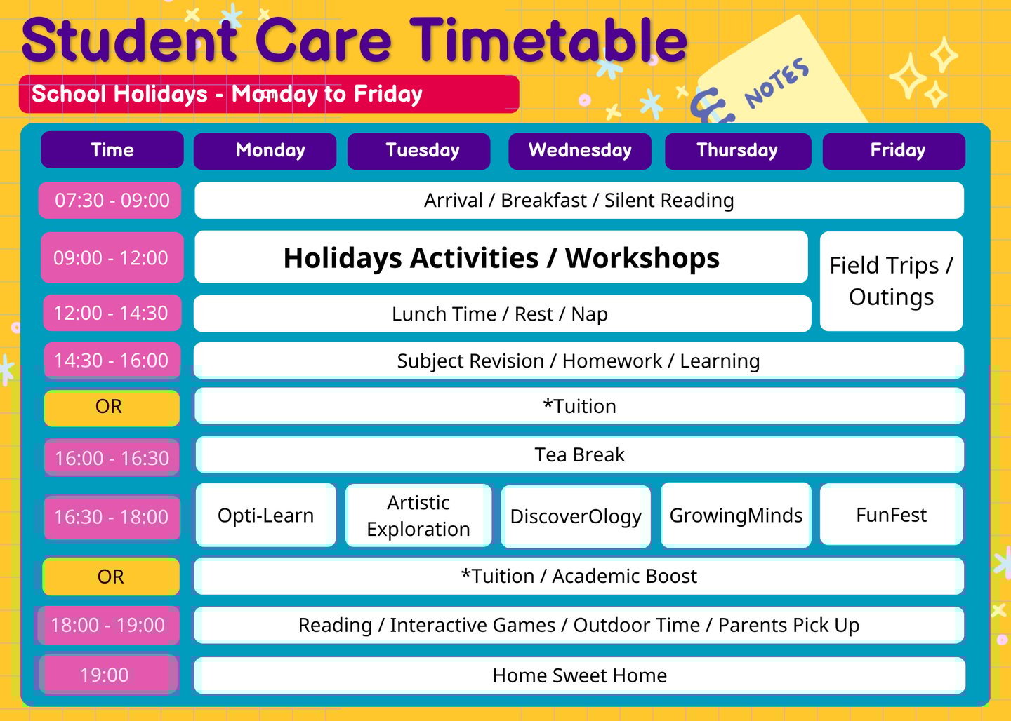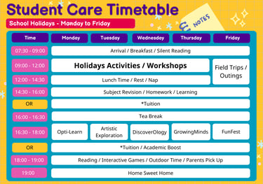 Our programmes provide a well-structured schedule to assist students in transitioning smoothly and fostering independence by guiding them on their homework and activity tasks.