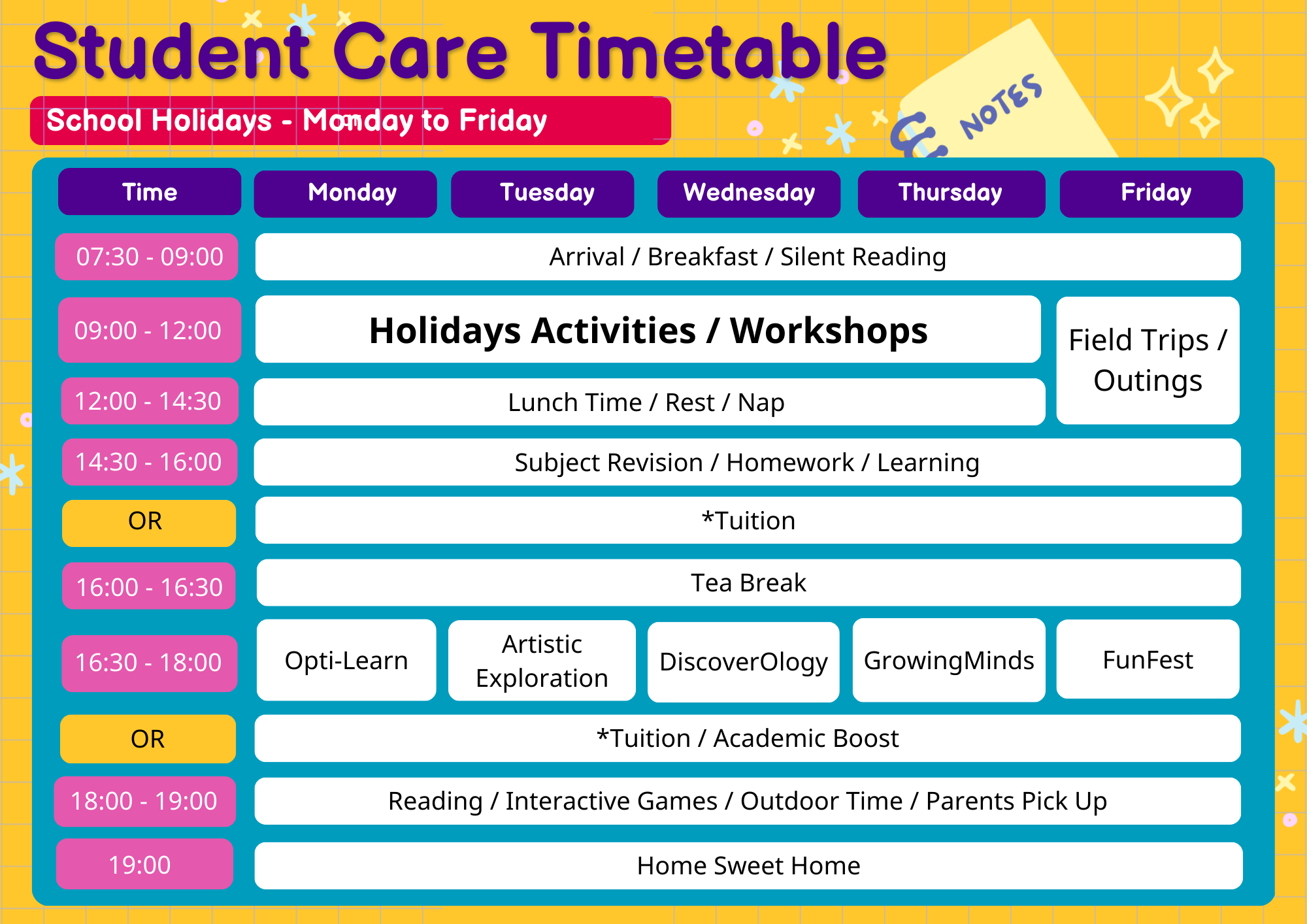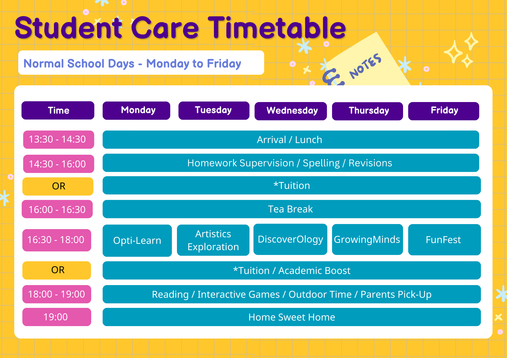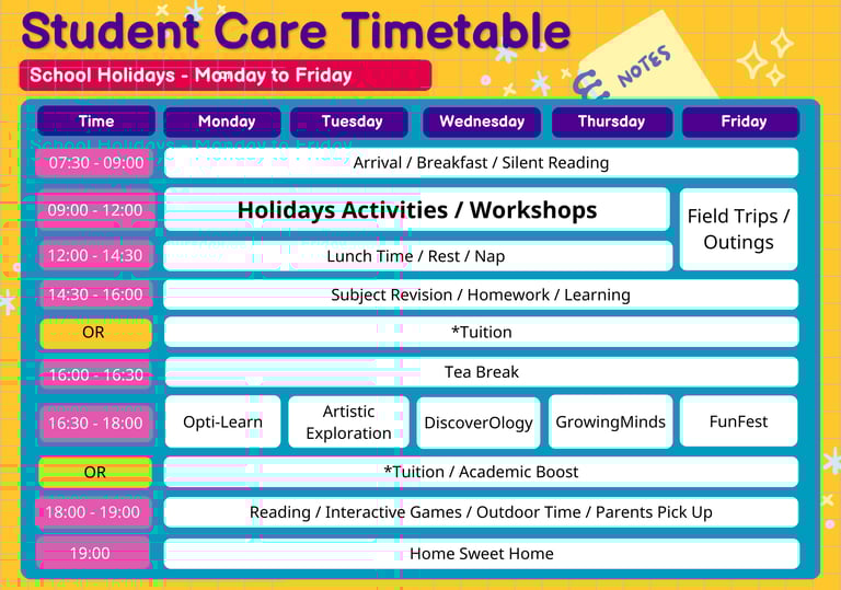 Our programmes provide a well-structured schedule to assist students in transitioning smoothly and fostering independence by guiding them on their homework and activity tasks.